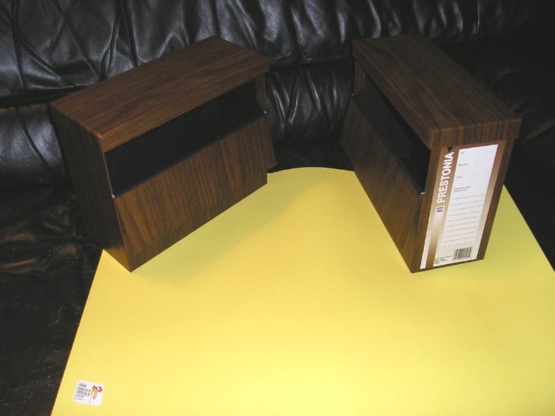 Luckily, I found a couple of cardboard filing boxes that are made to look like fake wood paneling so these will be perfect!